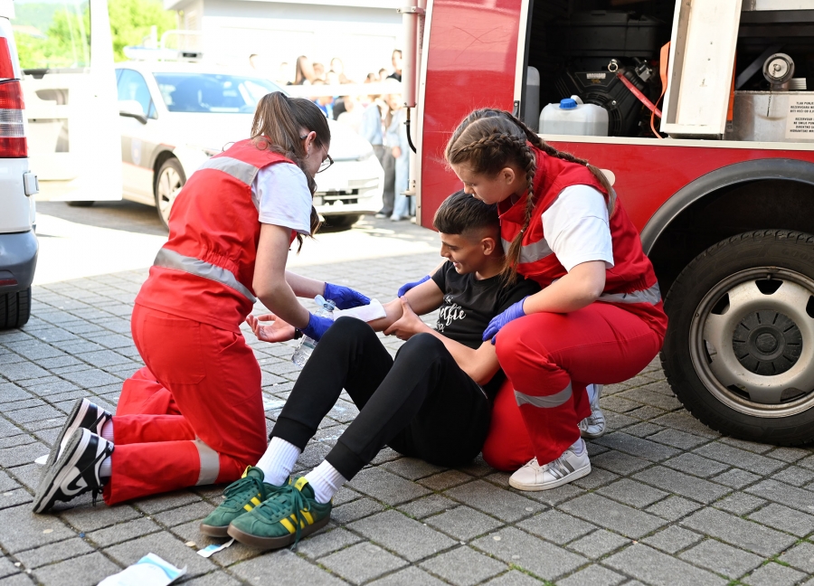 U sklopu vježbe, volonteri su u simuliranim uvjetima pružali prvu pomoć ''ozlijeđenim'' učenicima, čime su dodatno približili važnost pravovremene i pravilne reakcije u izvanrednim situacijama.